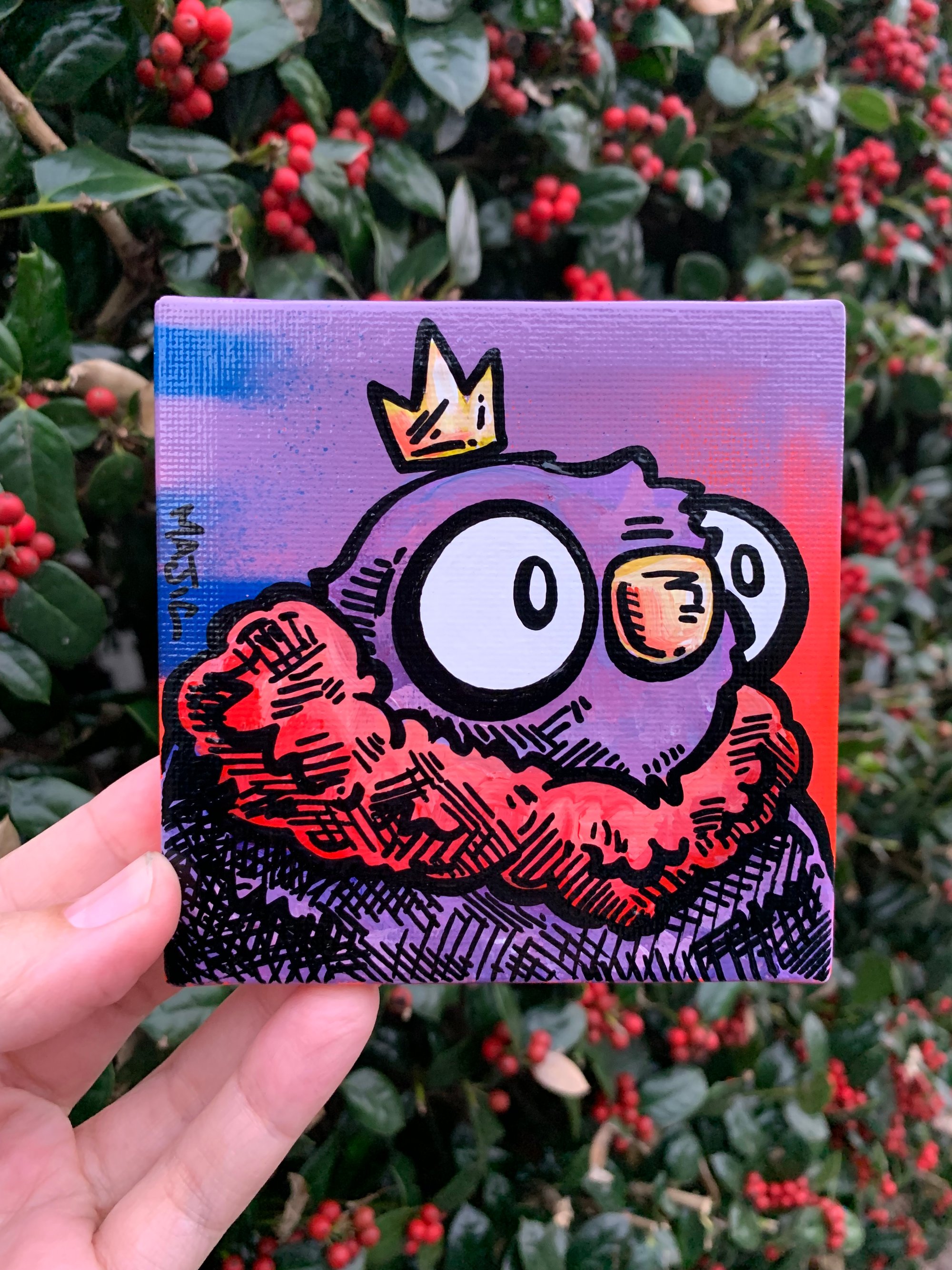 This piece is an original acrylic painting on canvas with paint marker outlines. Measures 4”x4”x 3/8”.