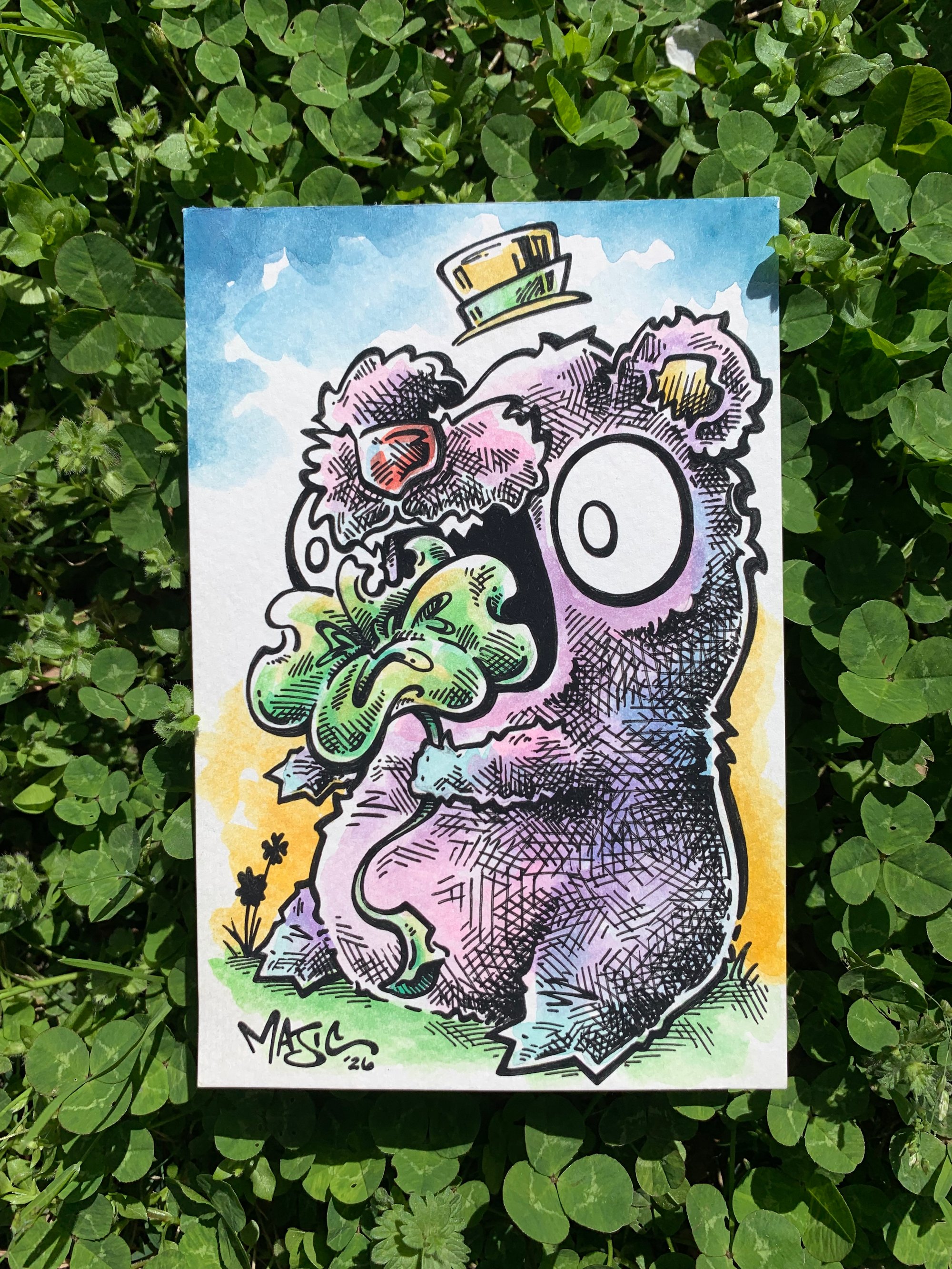 Feelinβ so lucky I could eat it up! Original watercolor and ink piece, measures 4βx6β.