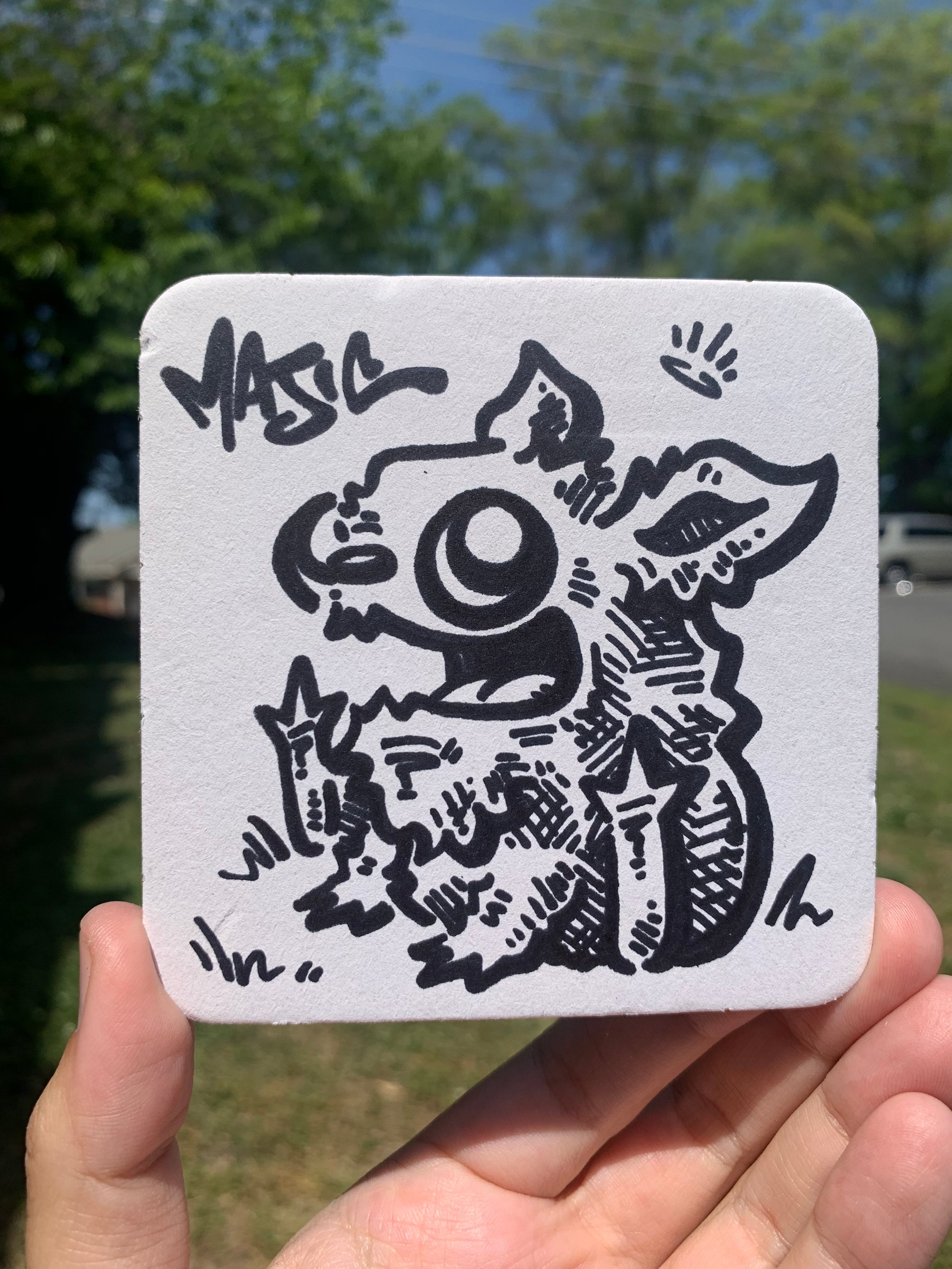Hand drawn with sharpie. Measures 4”x4”.