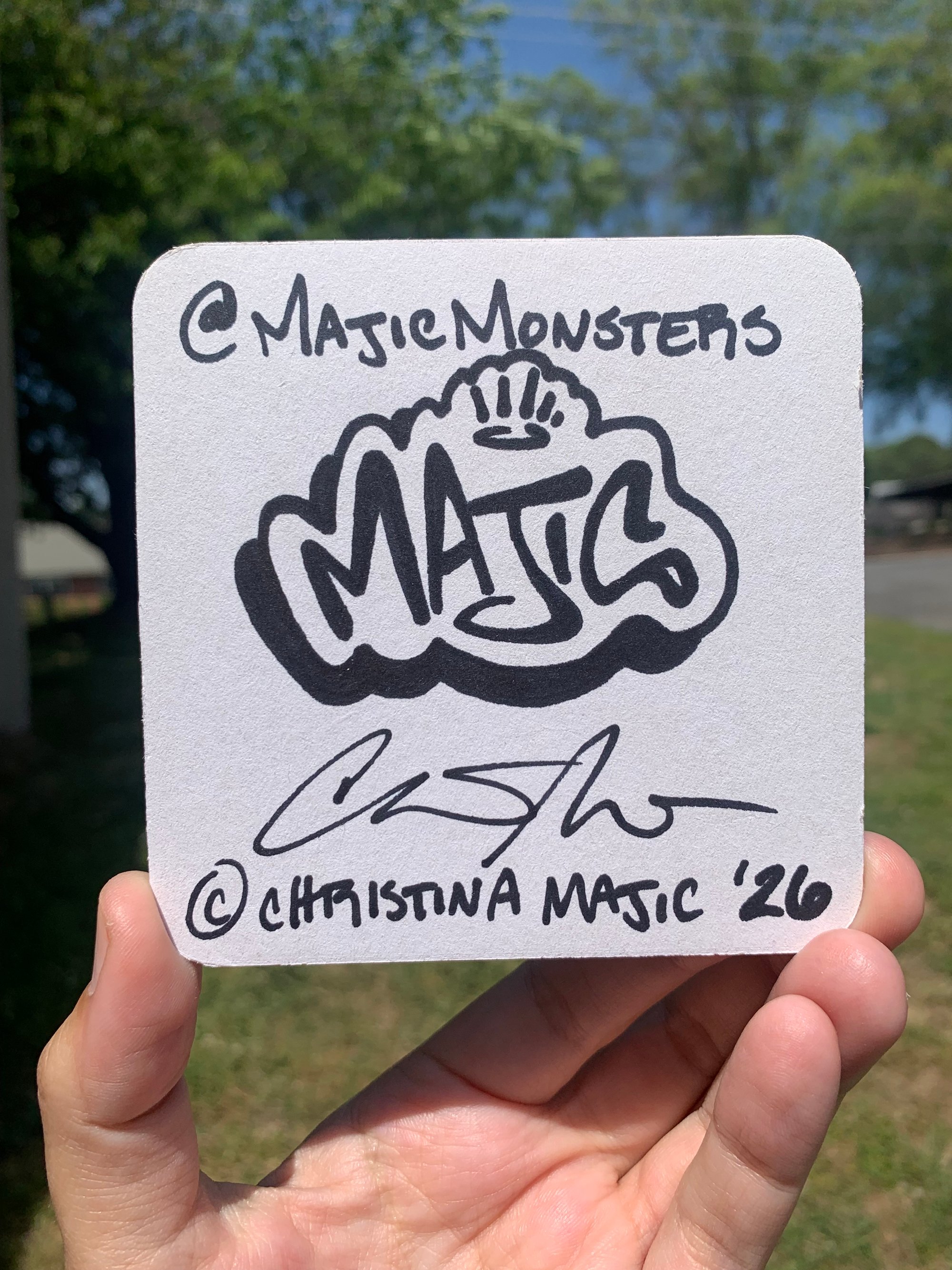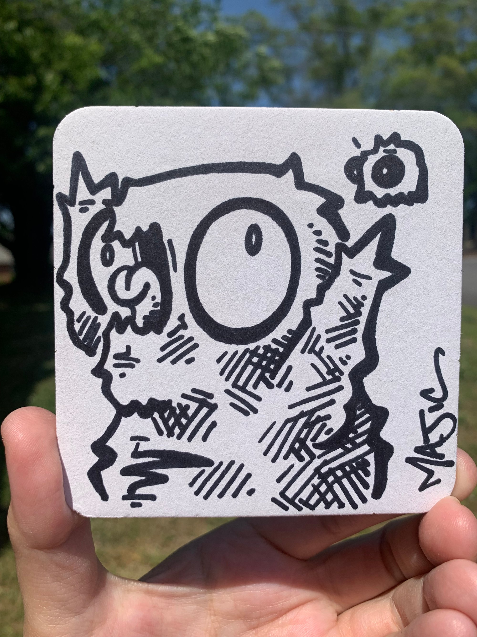 Hand drawn with sharpie. Measures 4”x4”.